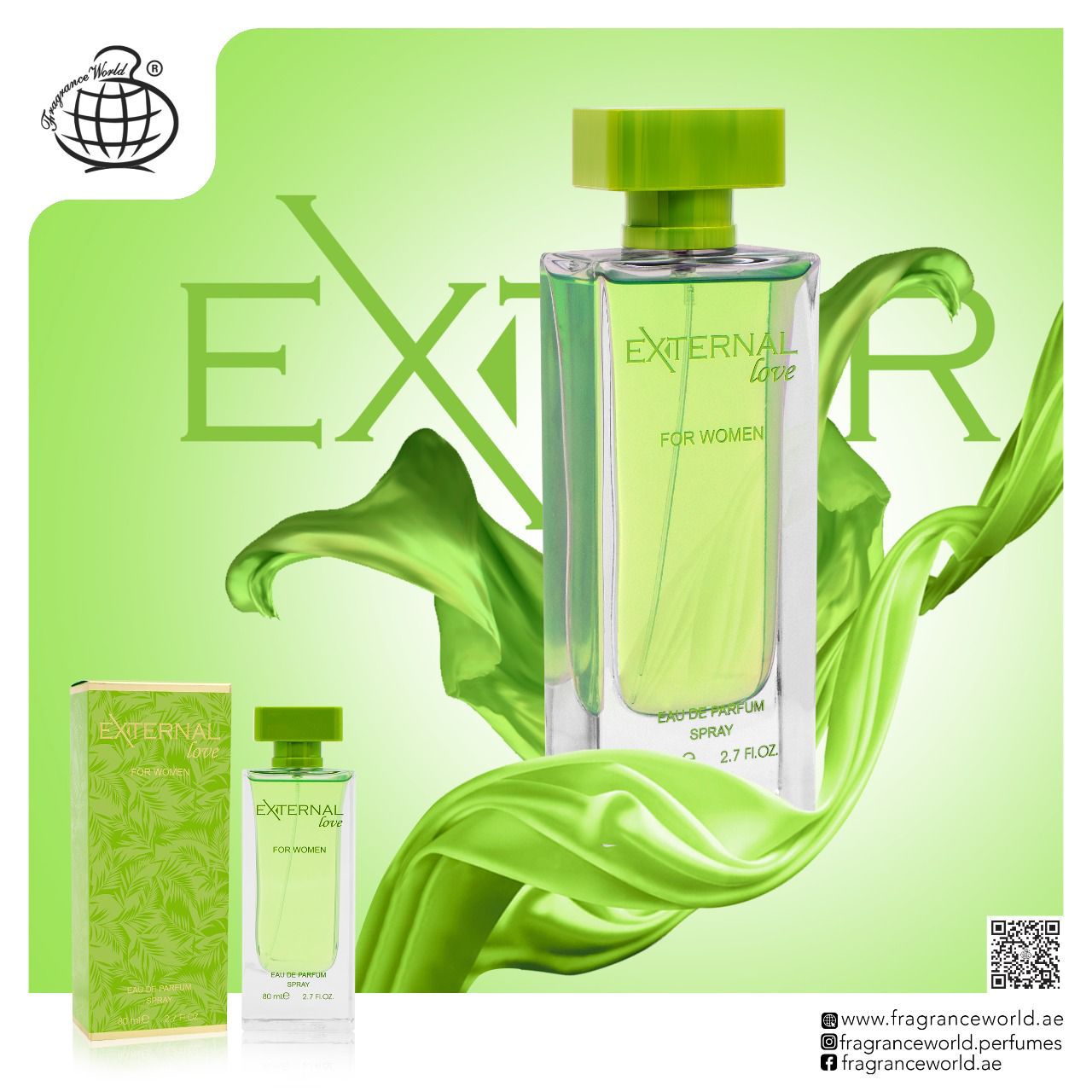 External Love for Women by Fragrance World. This fragrance is known for its fresh and sweet profile, falling under the floral-fruity olfactory group.