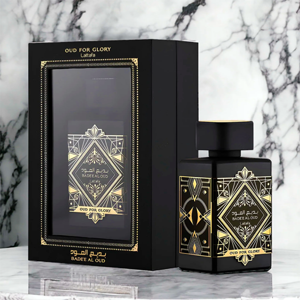 Bade'e Al Oud Oud for Glory by Lattafa Perfumes is a Oriental Woody fragrance for women and men. Bade'e Al Oud Oud for Glory was launched in 2020. Top notes are Saffron, Nutmeg and Lavender; middle notes are Agarwood (Oud) and Patchouli; base notes are Agarwood (Oud), Patchouli and Musk.