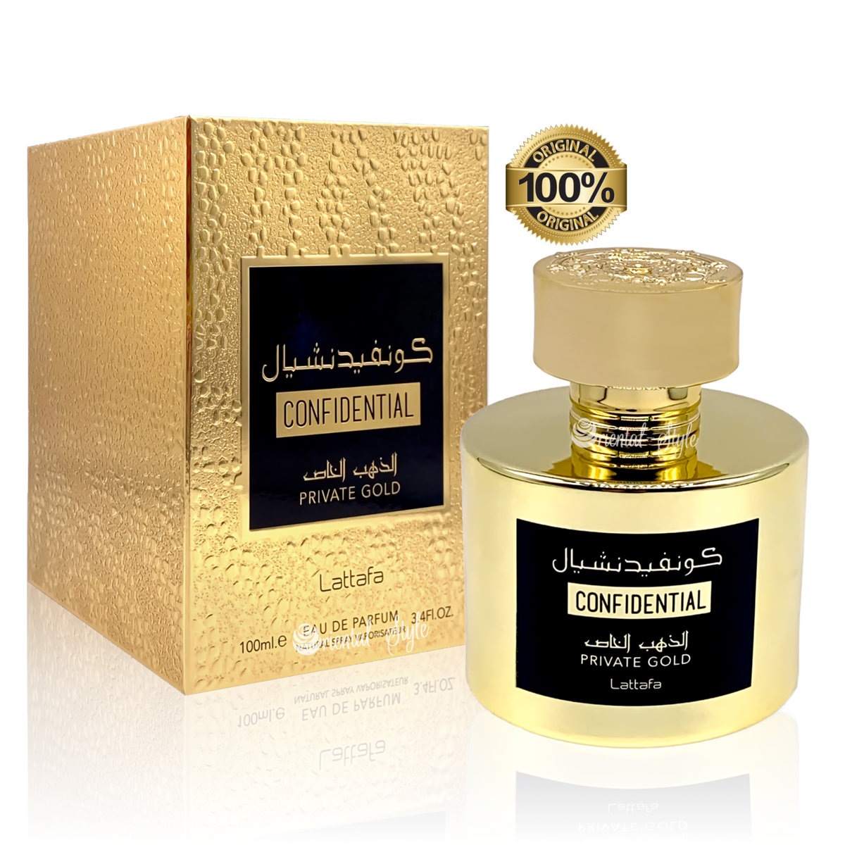 Lattafa Perfumes Confidential Private Gold for Unisex Eau de Parfum Spray, 3.4 Ounce