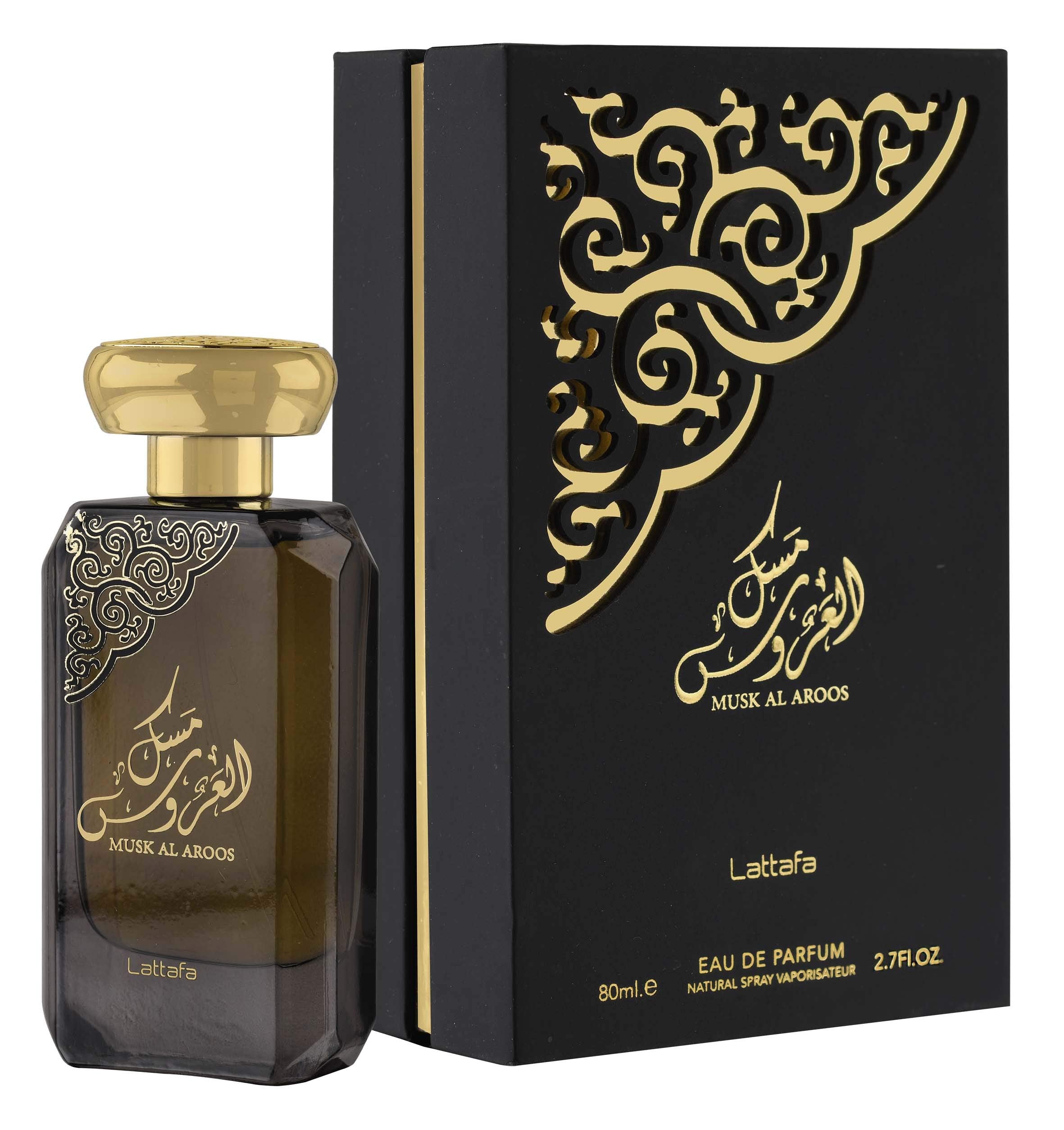 Perfume Musk Al Aroos Eau de Parfum by Lattafa Perfumes is a refined, slightly fresh perfume with an emphasis on Ambroxan, floral notes and white musk. The top note opens fruity and delicately fresh with lemons and Ambroxan. Bright floral notes follow in the heart note and are accompanied by sandalwood and white musk. Cedar, vanilla and amber harmoniously form the concluding base of Musk Al Aroos. Musk Al Aroos is a wonderfully pure velvety-creamy fragrance full of sensuality that goes well with any occasion.